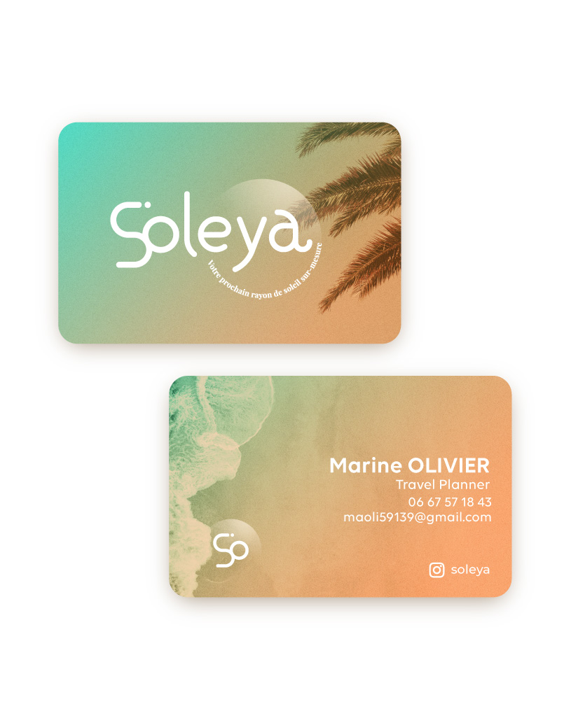 Marine dispose aujourd’hui d’une identité visuelle claire et impactante, qui traduit son professionnalisme tout en mettant en avant sa personnalité chaleureuse et passionnée. Une base solide pour faire décoller son activité de travel planner et séduire ses premiers clients.