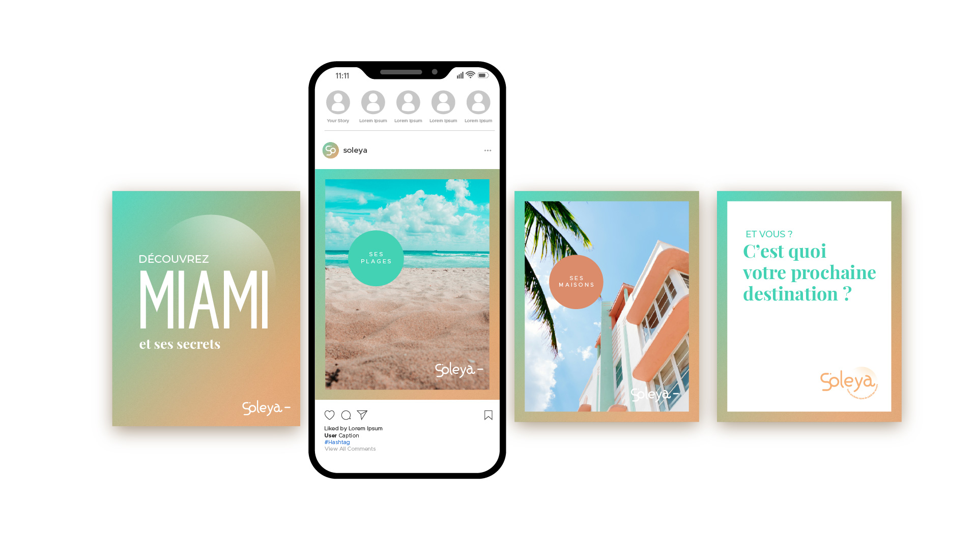 J’ai conçu le logo ainsi que l’ensemble des éléments constituant la charte graphique : signature mail et déclinaisons pour les réseaux sociaux, afin que Marine puisse communiquer de manière professionnelle et cohérente dès le lancement de son activité. Chaque détail a été pensé pour transmettre l’idée de voyage, d’inspiration et de confiance.
